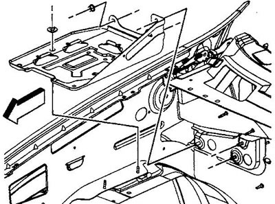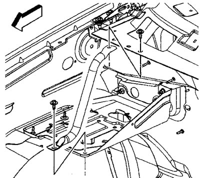 4. Отверните гайку крепления поддона к внутренней панели переднего крыла. Момент затяжки 9 Н·м.