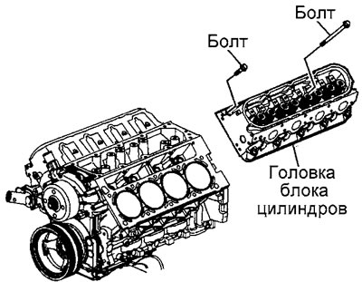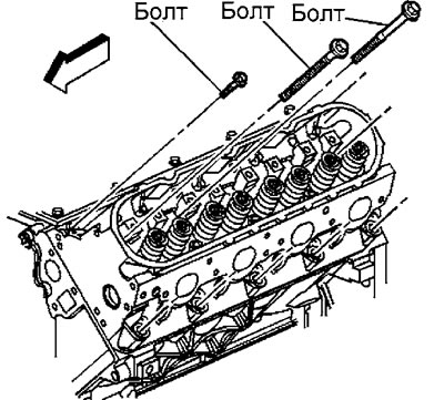 8. Отверните болты крепления головки блока. Выбросите болты, повторная установка болтов не допускается.