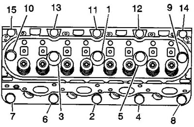 К пункту 9, последовательность затяжки болтов крепления головки блока цилиндров
