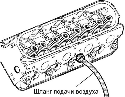 8. Подайте в цилиндр сжатый воздух для удержания клапанов на седлах.