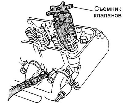 9. С помощью съемника клапанов сожмите клапанную пружину.