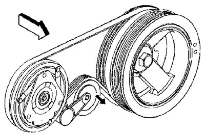 1. Наденьте ремень компрессора кондиционера на шкив коленчатого вала.