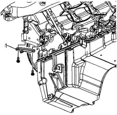 4. Установите фиксатор (1) коленчатого вала на болты М10х1,5 длиной 120 и 45 мм. Зуб фиксатора должен встать между зубьями венца маховика. Затяните болты крепления. Момент затяжки 50 Нм.