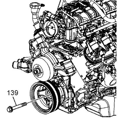 5. Отверните болт (139) крепления шкива коленчатого вала. Болт повторно не устанавливается, но он пригодится при установке шкива на место.