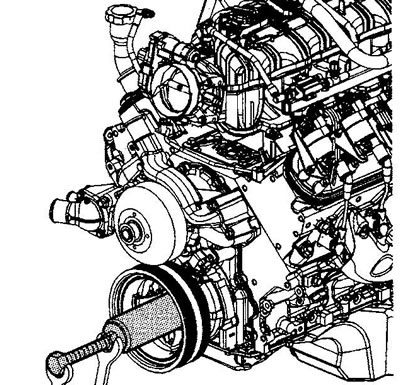 3. Установите СТАРЫЙ болт крепления шкива. Затяните болт. Момент затяжки 330 Нм.
