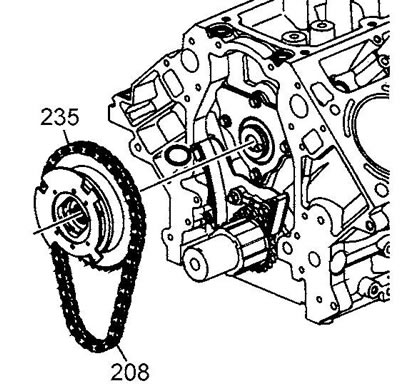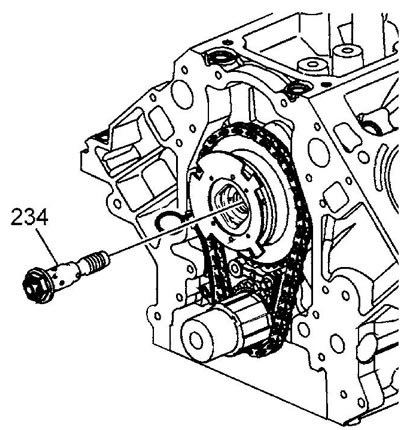 2. Снимите клапан (234) системы изменения фаз газораспределения.