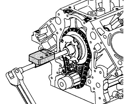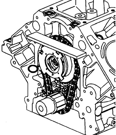 4. Приложите линейку к передней поверхности блока цилиндров и проверьте правильность установки привода и цепи: при правильной установке цепь не должна выступать за плоскость передней поверхности блока.