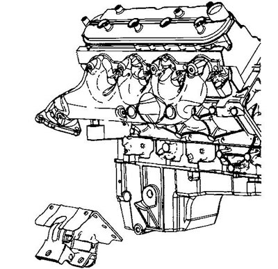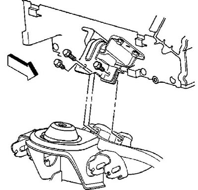 8. Отверните болты крепления опоры к двигателю. Момент затяжки 50 Нм.