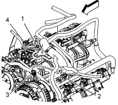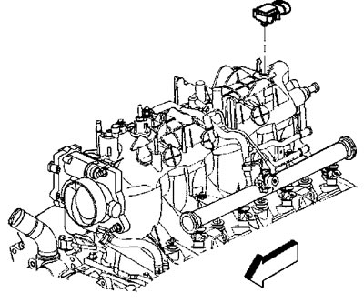 2. Отсоедините разъем (4) (поздние модели) или (1) (ранние модели) датчика абсолютного давления воздуха.