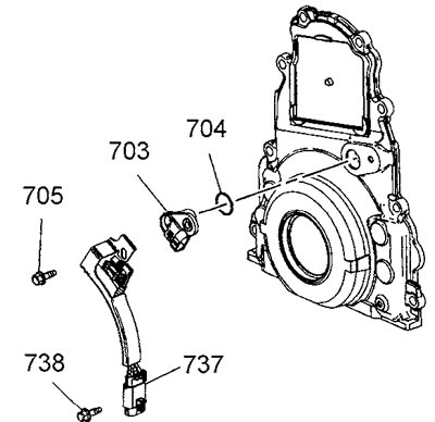 3. Отверните болты (705) и (738) крепления пучка проводов датчика. Показан рисунок для моделей без смены фаз газораспределения.