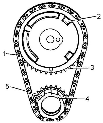 3. Проверьте цепь ГРМ (1) на изгиб или износ.