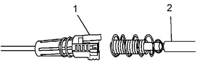 4. Возьмите наконечник троса (1) в левую руку и наконечник (2) в правую.