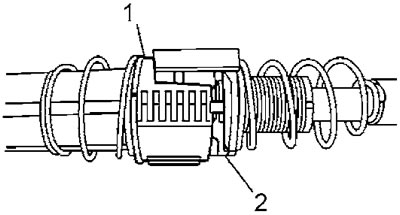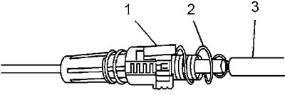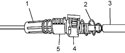 Внимание: при сжатии пружины (2) не держите наконечник (1), это приведет к разрегулировке троса.