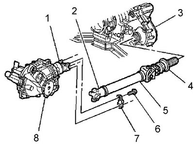8. Выньте карданный вал из выходного вала раздаточной коробки, снимите вал.