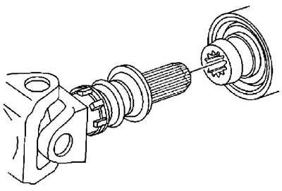 1. При необходимости смажьте шлицы выходного вала раздаточной коробки рекомендованной смазкой.