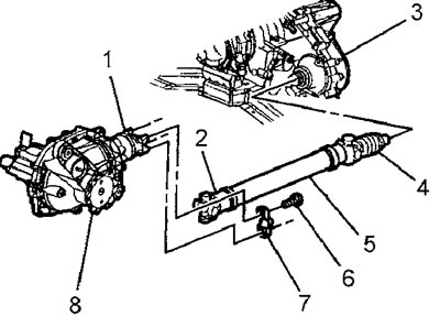 Предупреждение: при снятии карданного вала не применяйте удары по шарниру и не устанавливайте рычаг между вилкой и шарниром, в противном случае можно повредить шарнир.