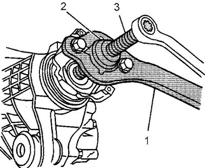 13. Установите в ключ (1) гайку (2) и винт (3) съемника вилки.