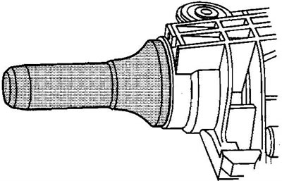 4. Ударами молотка с мягким бойком посадите вилку на вал шестерни до выхода нескольких витков резьбы вала шестерни.