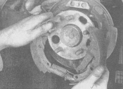 Внимание! При каждой замене тормозных колодок необходимо проводить замену натягивающих и удерживающих пружин. Поскольку эти пружины постоянно подвергаются циклам нагрева и охлаждения, они со временем теряют свою упругость и могут позволить колодкам притянуться к барабанам, отчего будет происходить износ колодок, существенно превышающий нормальный. При замене колодок задних тормозов пользуйтесь только высококачественными фирменными запасными частями.