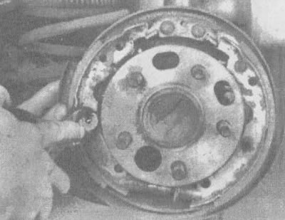 Примечание. Необходимо одновременно заменять все четыре тормозные колодки задних колес, но, чтобы не перепутать детали, работайте поочередно с каждым тормозным узлом.