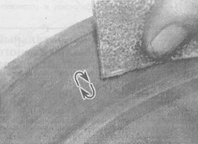 5.4ае. Удалите отполированные ("глазурованные") участки с поверхности тормозного барабана мелкозернистой шлифовальной шкуркой, обработав поверхность круговыми движениями