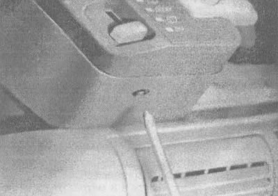 2. Отверните винт крепления выключателя, расположенный на приборной панели снизу (см. иллюстрацию).