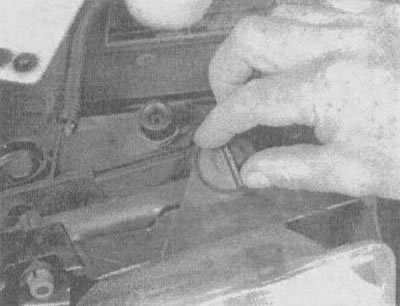 2. Отвернув два пластмассовых винта, разверните корпус фары вперед, чтобы открыть доступ к лампам (см. иллюстрацию).