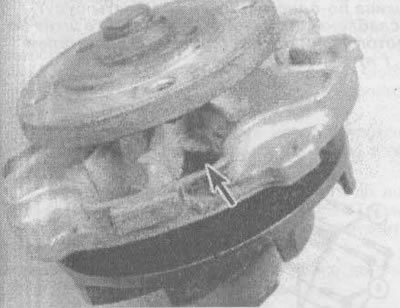 5. Если подшипники вала насоса охлаждающей жидкости выходят из строя, при работе двигателя может слышаться воющий звук со стороны приводного ремня. Когда двигатель выключен, можно почувствовать износ вала, если покачивать вверх и вниз шкив насоса. Не перепутайте проскальзывание приводного ремня, которое вызывает визжащий звук, с неисправностью подшипника насоса охлаждающей жидкости.
