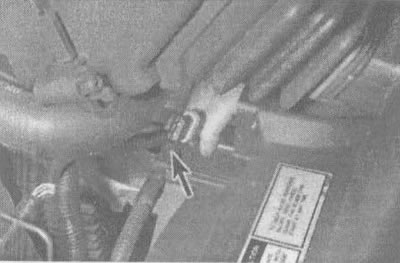 4.43б. ...и слева от вентилятора на двигателе 3,8 л (разъем указан стрелкой) |