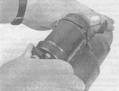5. Повернув реле против часовой стрелки, отсоедините его фланец от корпуса стартера (см. иллюстрацию).