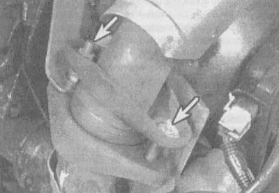 9.3. Патрубки выпускных коллекторов крепятся к выхлопной трубе болтами (показаны стрелками)