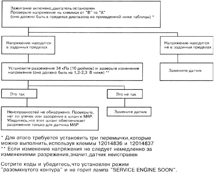 8. Процедуры проверки датчика МАР приведены в прилагаемой карте диагностики (см. блок-схему).