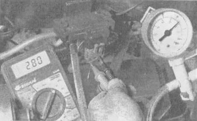 4.8б. Подайте разрежение на датчик МАР и снимите значение напряжения. Установите положительный вывод на сигнальный провод (клемма "В"), а отрицательный - на "массу" (клемма "А"). Напряжение должно уменьшаться