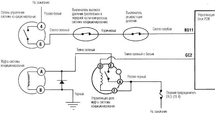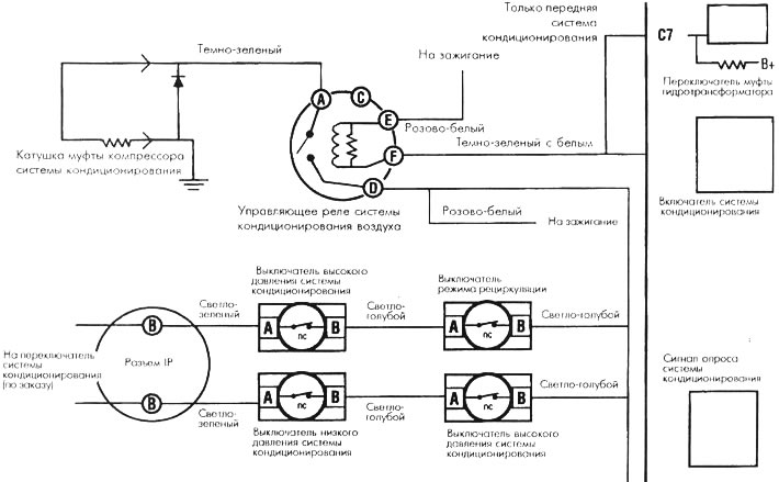 4.45в. Схема участка электрической цепи с управляющим реле системы кондиционирования автомобилей с двигателем 3,1 л