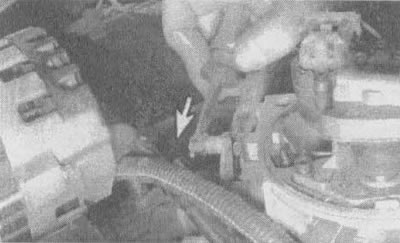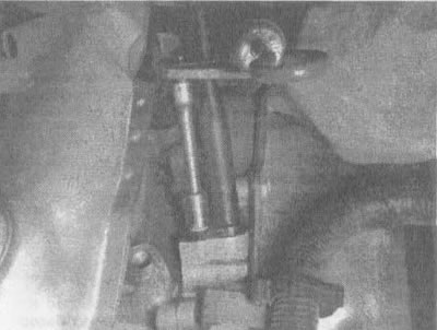 4. Отверните болт, удерживающий трос на коробке передач (см. иллюстрацию).