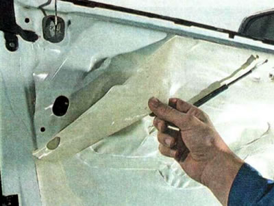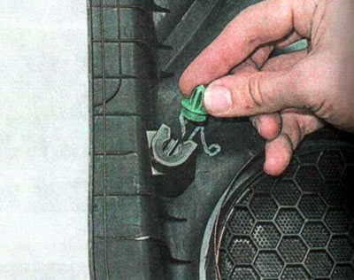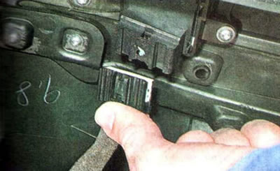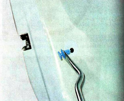 13. Если при снятии обивки держатель остался в панели двери, извлекаем его с помощью специального съемника и заменяем новым.
