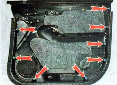 ... и блока управления электростеклоподъемниками (при снятии обивки левой двери) или клавиши управления электростеклоподъемником (при снятии обивки правой двери).