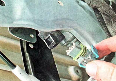7. Нажимаем фиксатор и отсоединяем колодку жгута проводов от мотор-редуктора.