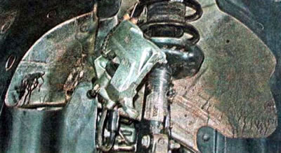 5. Тормозной суппорт подвешиваем на шнуре (или проволоке), не отсоединяя от него шланг.