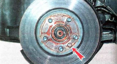 Рекомендация. При выполнении следующей операции для предотвращения случайного падения тормозного диска заверните на пару оборотов одну гайку крепления колеса.