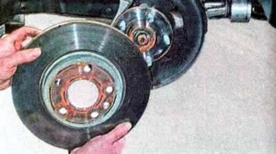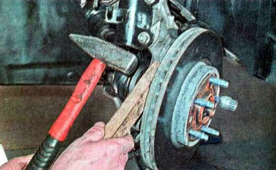 11. Если тормозной диск не снимается, обстукиваем молотком его привалочную плоскость или через деревянный брусок сбиваем его с обратной стороны.