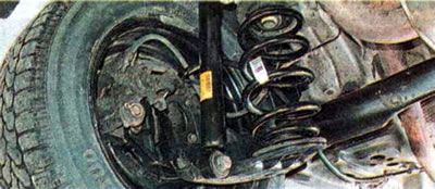 Задняя подвеска автомобиля полунезависимая, выполнена на упругой балке с продольными рычагами, отдельно установленными пружинами и амортизаторами двустороннего действия.
