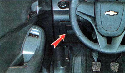 В салоне автомобиля блок предохранителей и реле расположен под панелью приборов слева от рулевой колонки за вещевым ящиком.