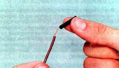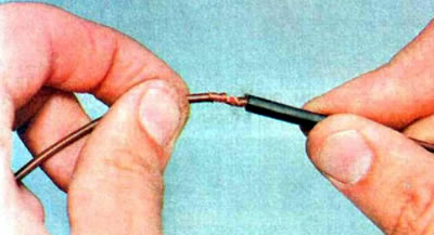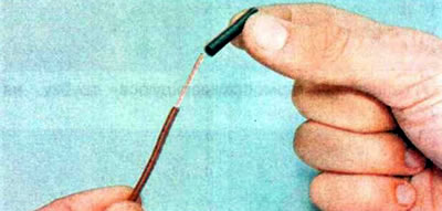 2. Надеваем на один из проводов термоосаждающуюся трубку длиной примерно 25 мм.