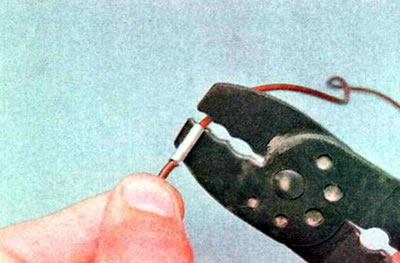 1. Зачищаем концы соединяемых проводов так, чтобы зачищенная часть была по длине равна половине соединительной муфты.
