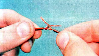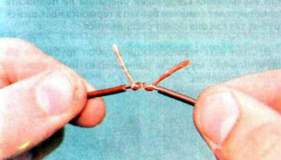 3. Скрещиваем провода и обматываем первый провод на один оборот вторым.