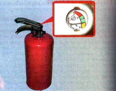 В случае недостаточного давления (красный се огнетушитель необходимо заправить.