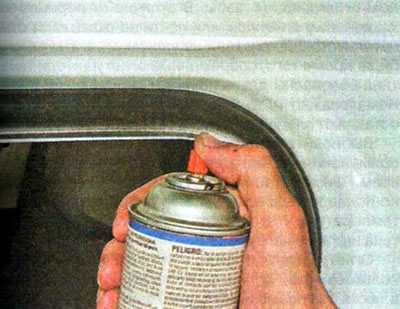 1. Открываем дверь водителя и наносим на резиновые уплотнители дверного проема силиконовую смазку по всему периметру.