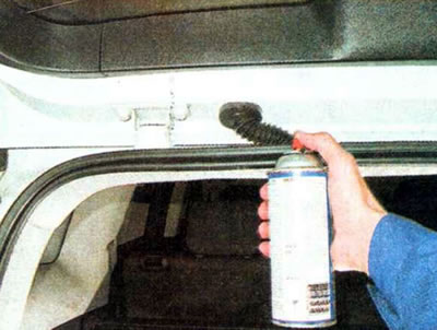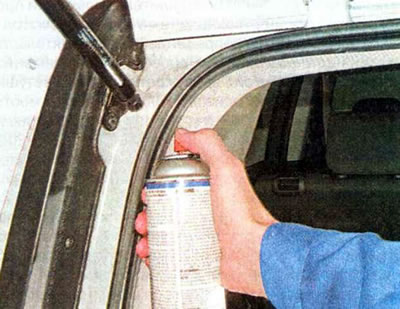 4. Открываем дверь багажного отделения и обрабатываем уплотнитель дверного проема по всему периметру.