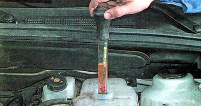 5. Проверить состояние шлангов и радиатора системы охлаждения двигателя, проверить уровень и концентрацию охлаждающей жидкости в расширительном бачке.